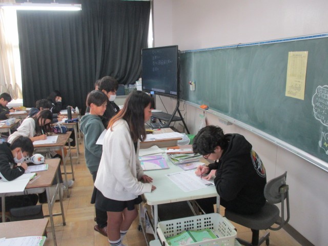 2学期も終わりに近づき、学んだことを定着させるためにプリントや学習用端末で練習問題に取り組んでいるクラスがたくさんあります。