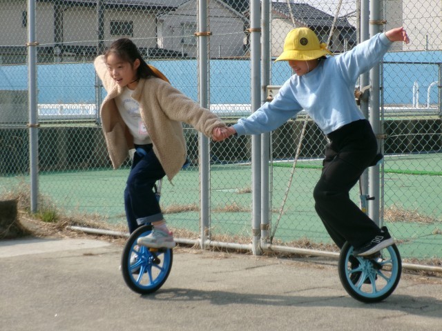 今日の放課「遊具編」のようすです。子どもたちは元気に一輪車や鉄棒で遊んでいます。自分のお気に入りの遊具が空いているととてもうれしそうです。また、一輪車の乗りながら鉄棒につかまっている子どもたちが「撮って~」と声をかけてきました。これからも仲よくしてくださいね。※3枚目の写真の「+」をクリックするとそれ以外の笑顔が見られます。