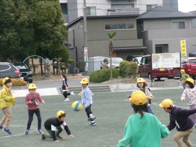1年生もドッジボールを覚えて、たくさんの子が遊んでいます。