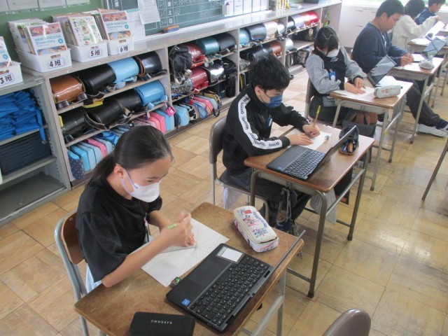 神山小学校では毎朝8:30〜8:45を「スキルタイム」としています。また、今年度からは月、木の給食後にも「昼のスキルタイム」を設けています。今日の朝のスキルタイムでは、漢字の練習に取り組んでいるクラスが多くありました。また、高学年のクラスでは学習用端末を活用して、絵の描き方の確認をしたり、体育の練習方法を確認したりしているクラスがありました。15分間を効果的に活用し、基礎基本の定着につなげています。 -