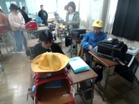 音楽の時間に、カウベル、ギロ、クラベスという楽器の鳴らし方を学習しました。打楽器...