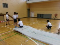 今日の放課、先生と子どものようすです。運動場では、5年生と6年生がドッジボ...