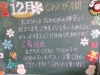 今朝の黒板のメッセージの一部です。「12月(師走)・人権週間!」という記載...