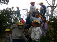 今日の昼放課「かみやまのもり」のようすです。やまの頂上・記念碑の前にも多くの...