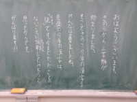 3学期始業式の黒板のメッセージの一部です。 始業式、黒板にメッセージには「...