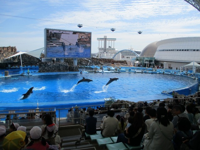 シャチ、バンドウイルカ、ベルーガがお出迎えの名古屋港水族館。イルカのショーに大感激の子どもたちでした。