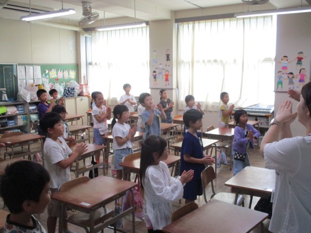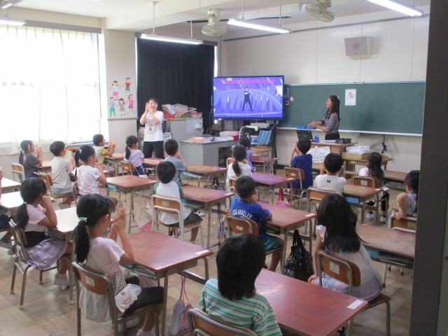 今日はALTの訪問日です。1年生も、ALTや英語に触れ合う時間があり、とても楽しく活動できました。