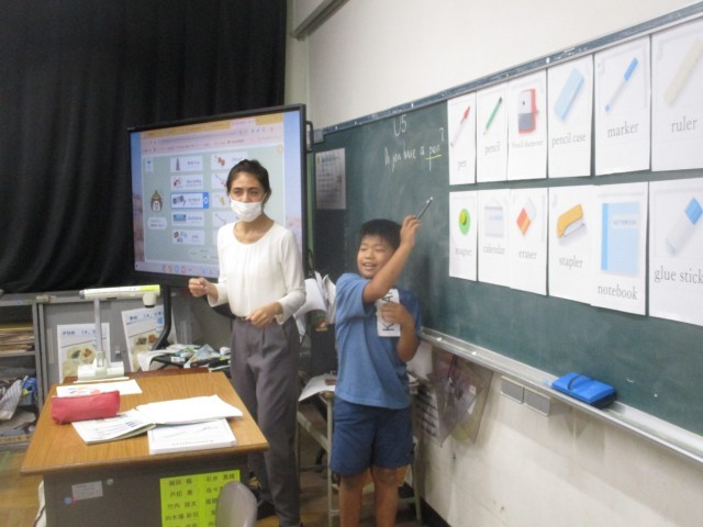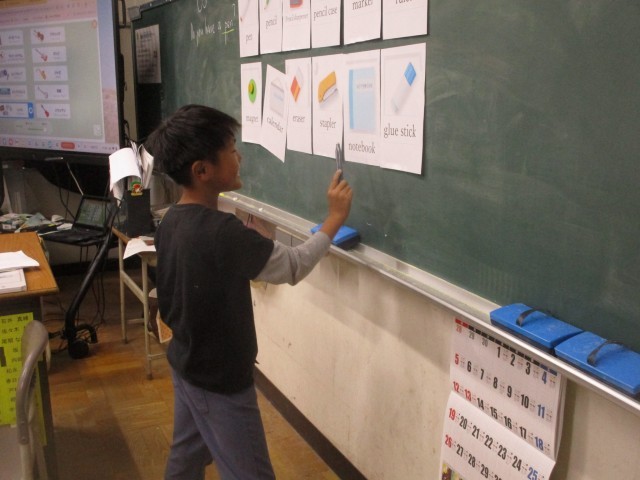 10・7(火)外国語活動の授業で文房具の名前を勉強しました(4年生)