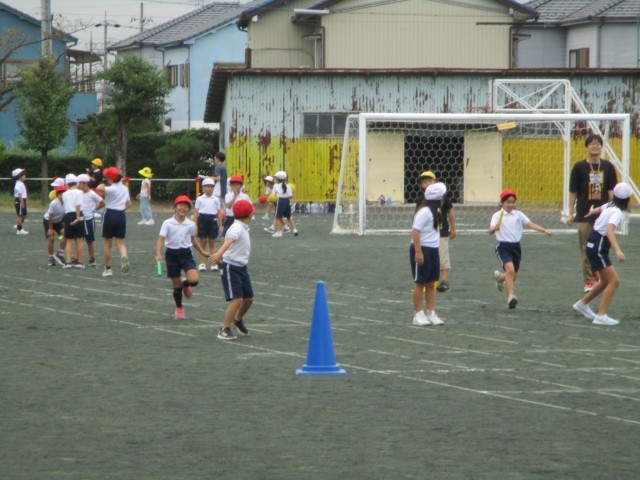 リレーのバトンパスについて、学習しました。リードの仕方や掛け声のかけ方をグループごとに練習し、スムーズにバトンパスができるように頑張っていました。