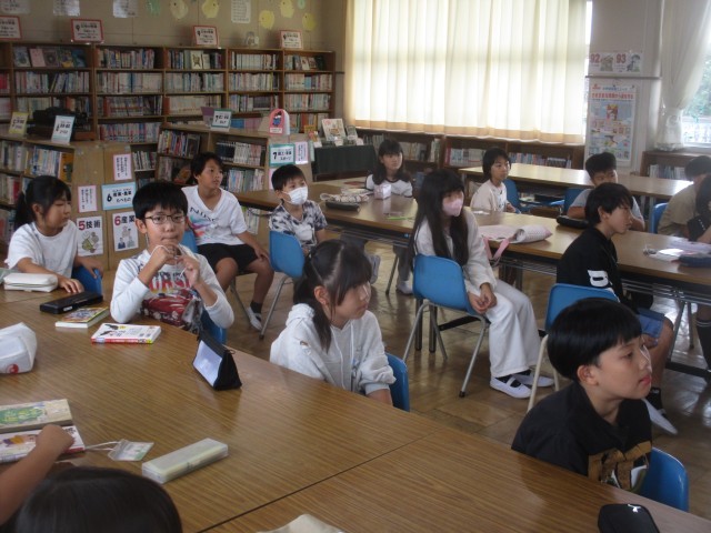 今日は、新美南吉のブックトークを聞きました。養子になったことや若くして亡くなったことも聞きました。絵本もたくさん読み聞かせていただきました。廊下にたくさんの本を集めていただいたので、手に取って読んでいきます。