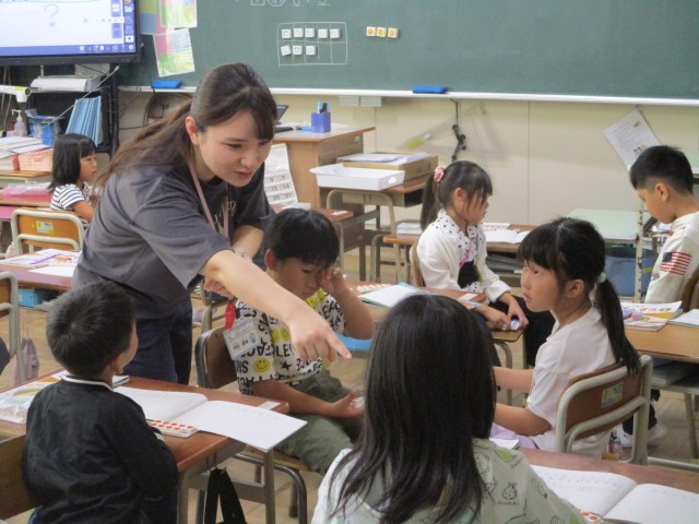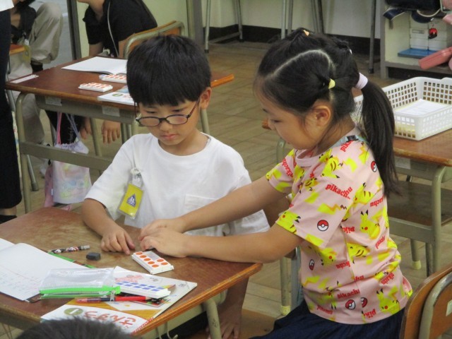 足し算で「8+3」について、数図ブロックを使って学習しました。「+3」をどういう風に考えて計算したらよいのかを、ペアで話し合いました。繰り上がりの仕組みがわかってきますね。