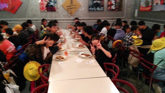 太秦映画村はたいへん混んでいましたが、アトラクションもなんとか体験できました。修学旅行最後の食事も美味しくいただきました。いよいよ帰路につきます。