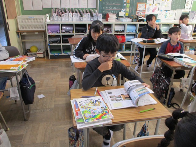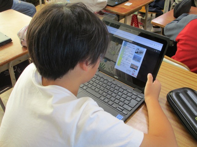 社会科では、副読本「だいすき大愛知」を使って名古屋港について学習しています。どのような歴史があるのかを副読本やタブレットを使って調べてみました。