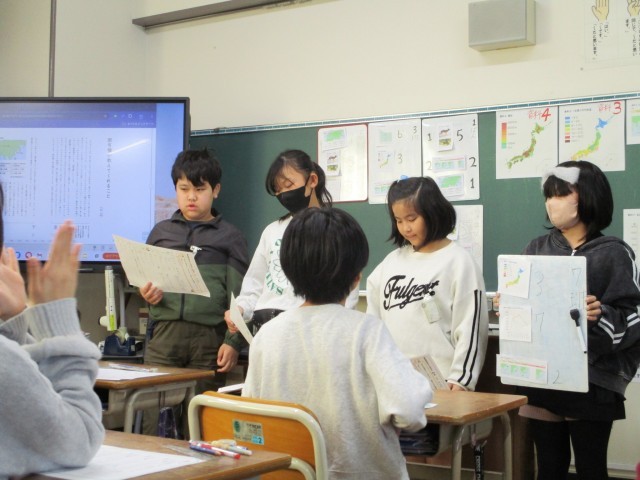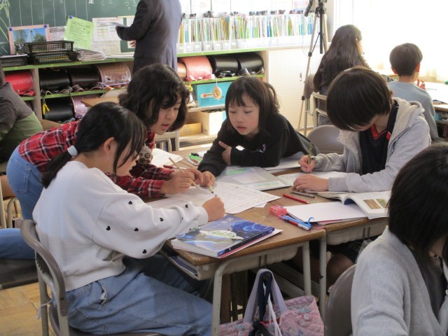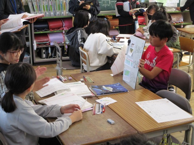 国語で、資料の必要性について自分の考えをもとにグループで活発に話し合い、発表しました。多くの先生方にも授業を見ていただきました。