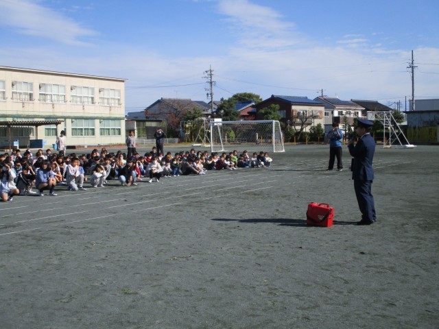 警察署の方に協力をいただき、不審者対応避難訓練を行いました。北舎と本館に不審者が侵入したことを想定し、先生方の対応、子どもたちの避難行動など、本番さながらの訓練をすることができました。学校以外でも不審者に遭遇したとき、「イカのおすし」の合言葉を思い出し、行動をとれるようにしていきたいと思います。