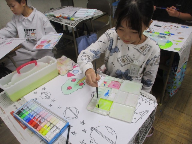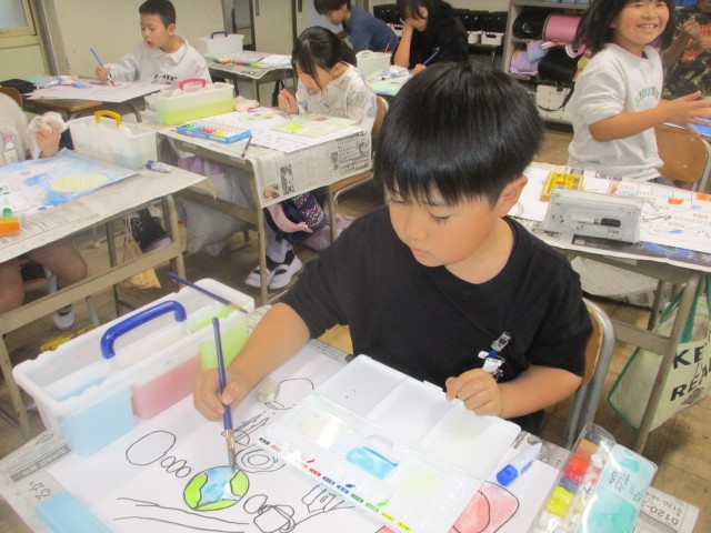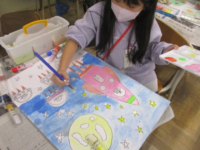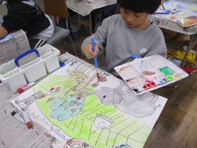絵の具の色を混ぜ合わせて、「自分の色」を作り出して塗っていくことができるようになりました。