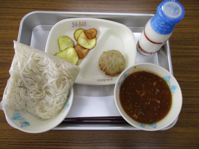 今日の給食は、ソフト麺、きゅうにゅう、肉みそソフト麺のしる、キャベツいりつくね、さつまいもチップス、美味しいかったのは、ぜんぶです。ソフト麺は、こしがあって、のどごしがあり、おいしかったです。きゅうにゅうは、冷たくて美味しかったです。肉みそソフト麺のしるは、あじがしかりしていて、具材がゴロゴロしていて美味しかったです。キャベツいりつくねは、味がしかりしでいて美味しかったです。さつまいもチップスは、カリッとしていておいしかったです。