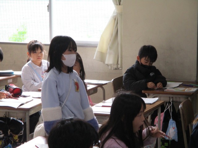 算数で、三角形と四角形について学習しました。いろいろな形から見分けられるようになりました。