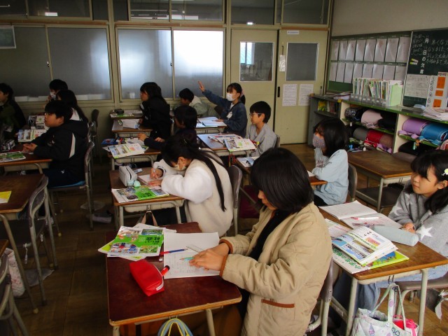 社会科の時間、輸送について学習しました。さまざまな乗り物輸送の利点や違いについて意見を出し合っていました。