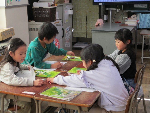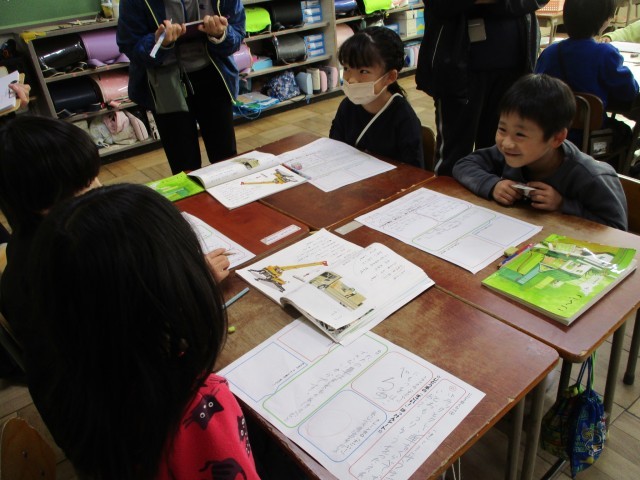 国語で「じどうしゃくらべ」の学習を進めています。今日はトラックとクレーン車を比べて、すごいと思ったことをグループで伝え合う活動を行いました。みんなとても頑張っていました。