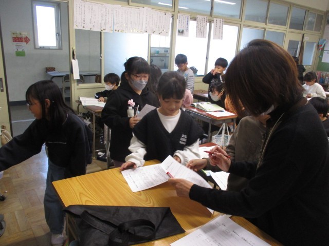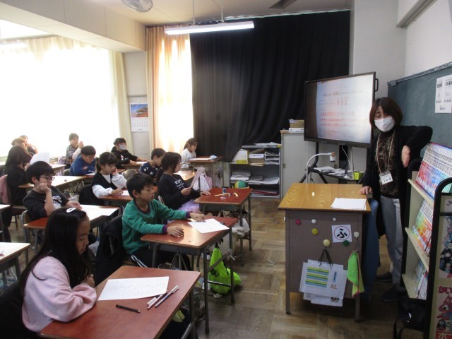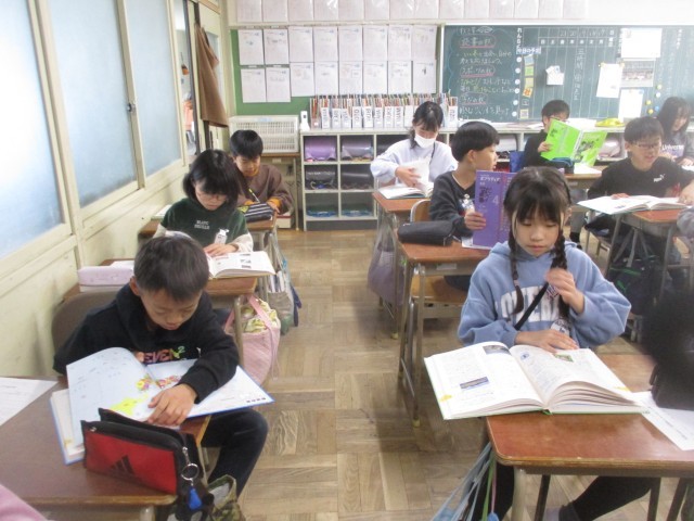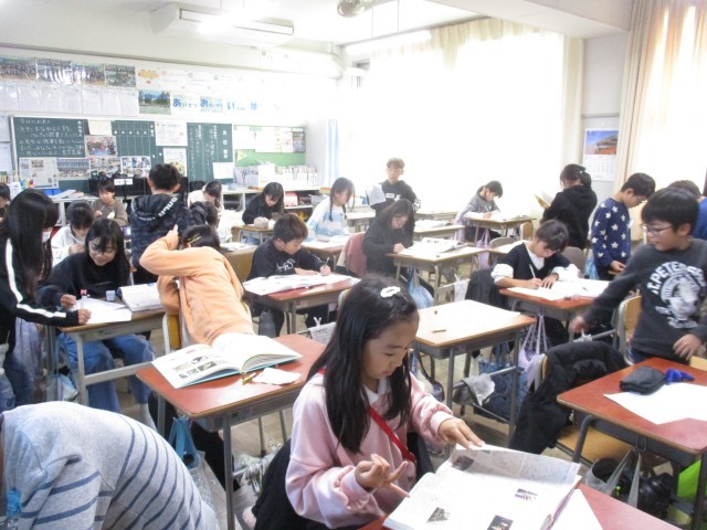 図書館司書の畑先生から、百科事典の使い方について学びました。どの部分を手掛かりに探したらいいか、実際に調べながら学習しました。これからも、ぜひ活用したいですね。