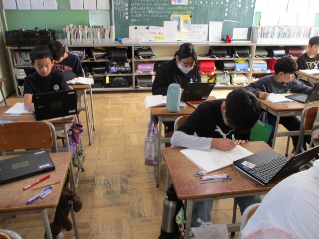 国語の時間に、日本の文化についてクロームブックを使って調べ、その魅力について文章でまとめました。