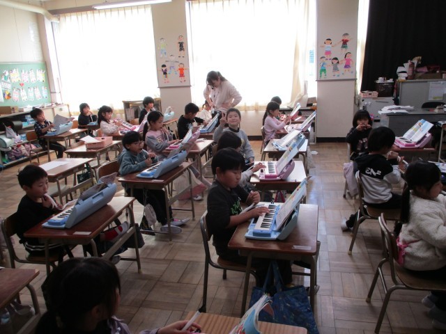鍵盤ハーモニカを使って曲を練習しています。ずいぶんと指づかいもスムーズになってきました。
