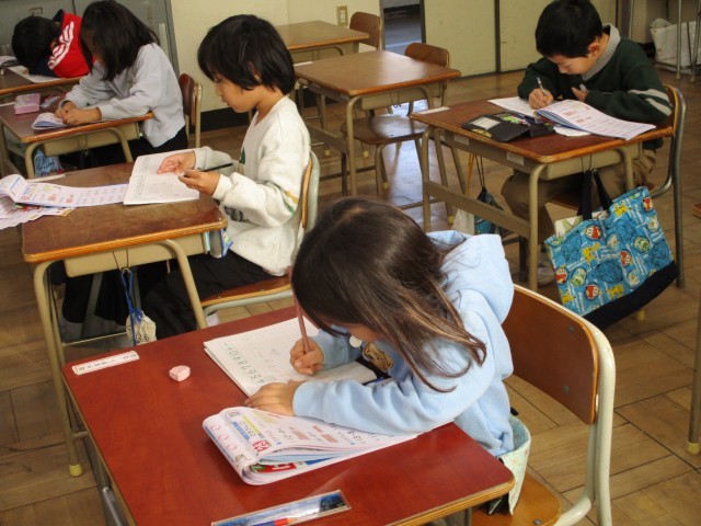 算数の時間、定着をめざして計算ドリルの問題に取り組んでいました。みんな頑張っています。