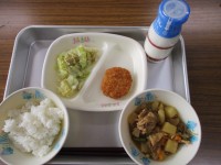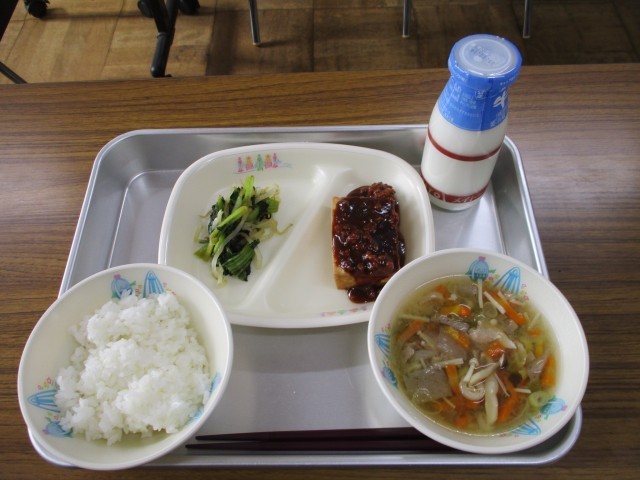 今日の給食は、絹厚揚げの肉みそがけ、みぞれ汁でした。絹厚揚げの肉みそがけは豆腐とは違う食感で、とても美味しかったです。みぞれ汁は豚肉、にんじん、えのき、しめじ、こんにゃく、ねぎ、ダイコンなどがたくさん入っていて美味しかったです。