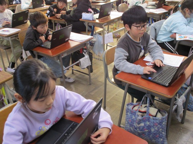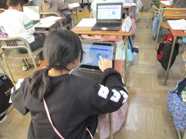 今日は、ICT支援員の訪問日です。Canvaのプレゼンテーションソフトの使い方を学びました。実際に操作しながら総合の時間で調べている資料をもとに、プレゼンテーションを作ってみました。