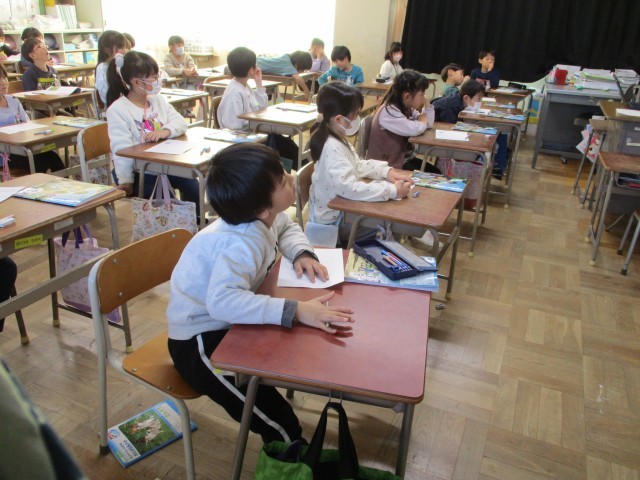 道徳の時間です。お話に出てくる登場人物の取った行動や、心に決めたことをもとに、自分だったらどうするのかをしっかり考えました。