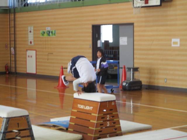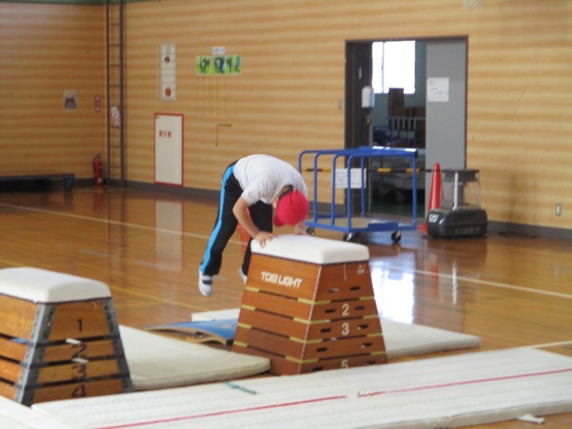 自分のレベルに合わせて、台上前転を練習しました。ちょっとしたアドバイスでとても上達しました。