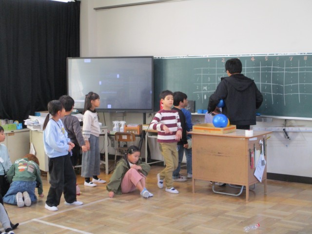 2学期もあと少しです。今日はお楽しみ会を行いました。ペットボトルを利用して、ボーリングを行っていました。