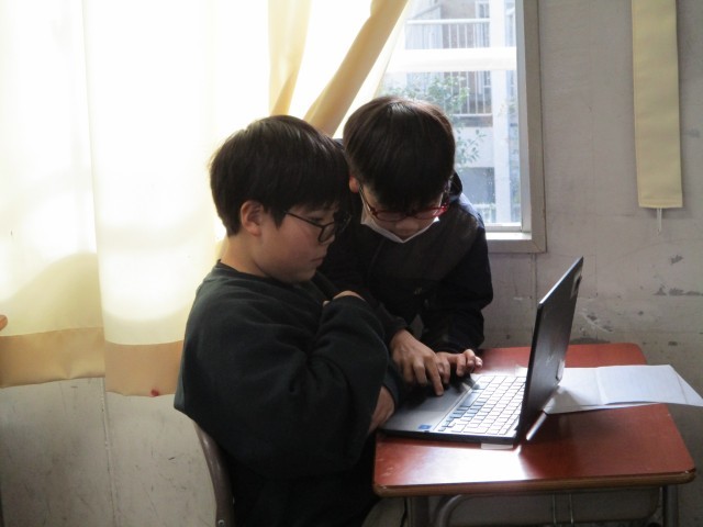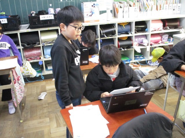 学習発表会に向けて、準備を進めています。調べたことをもとにプレゼンテーション資料を作成していました。