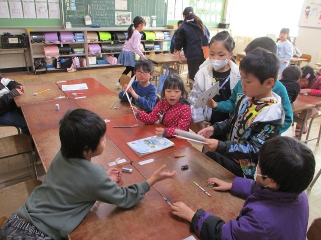 学習発表会に向けて準備しています。役割ごとに分かれて、それぞれ頑張っています。