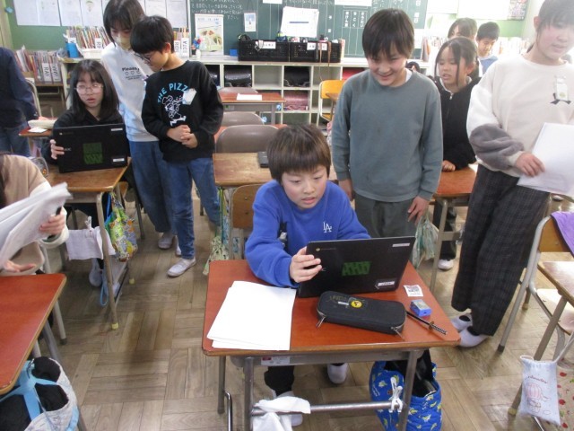 本日6時間目、総合的な学習の時間に、発表の準備を行いました。発表原稿を清書したり、原稿を読む練習を行いました。