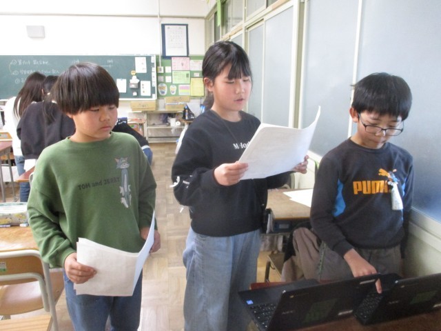 6時間目、発表会に向けて、練習を行いました。来週火曜日には3年生に見てもらうので、本番の形で練習を行いました。