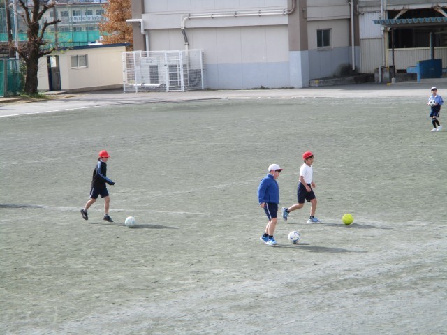 寒空の中、外での体育を頑張っています。長距離走やサッカーなどでしっかりと体を動かしていました。