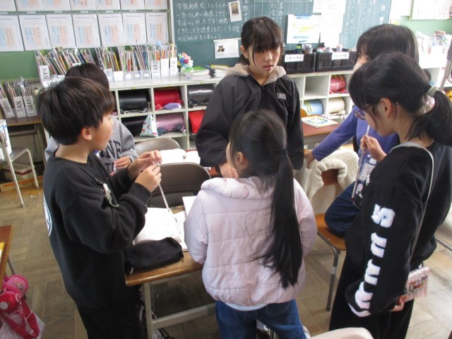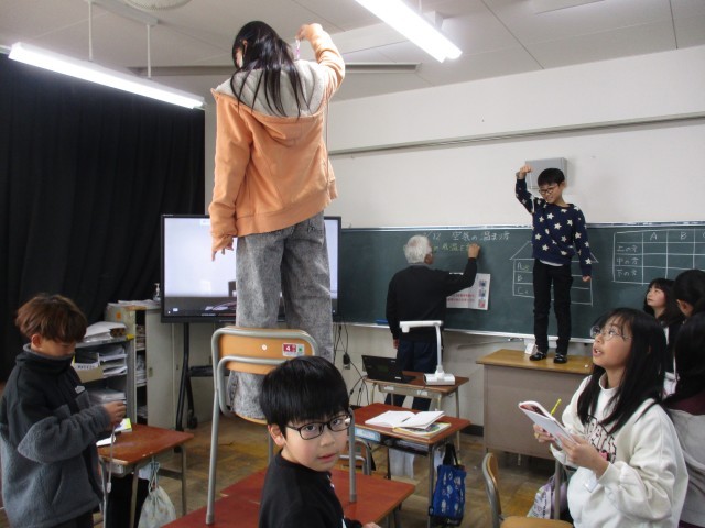 理科の時間に、温まり方について調べていました。部屋の上と下等、表にまとめて、気づいたことをまとめていました。