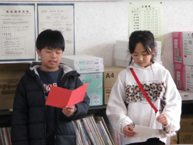 本日、見守り隊感謝の会を行いました。各学年代表児童が日ごろの活動に対し、感謝の言葉を述べ、見守り隊のみなさんも大変喜んでいました。これからも本校児童の安全安心のためにご協力よろしくお願いいたします。