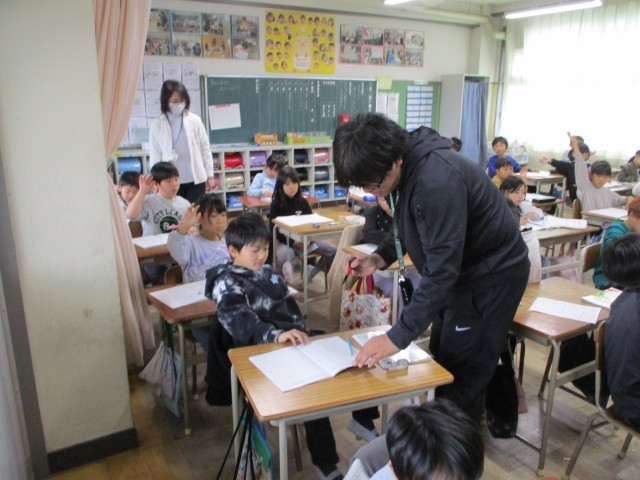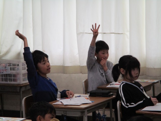 算数で分数につながる学習をしました。分け方のキーワードを理解し、いくつずつに分けられるのかを考えていました。