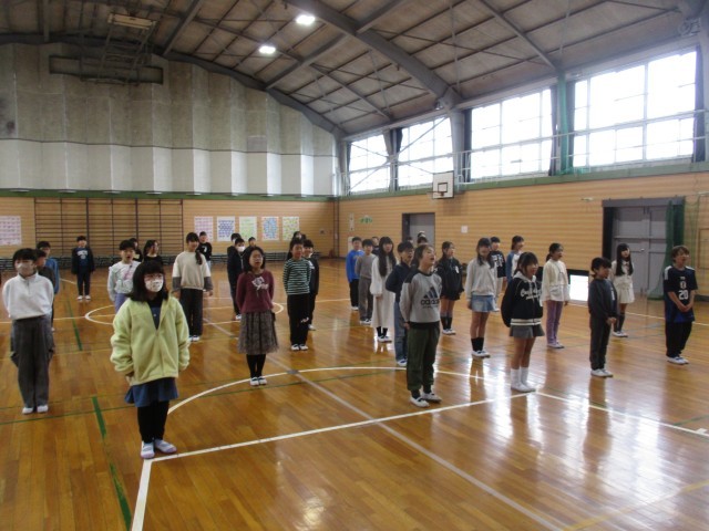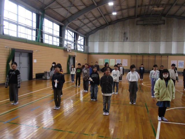 6年生を送る会に向けて、3時間目に屋運で学年練習を行いました。立ち位置の確認をして、移動する練習もしました。話を聞く態度、練習する様子など、集中して取り組んでいてすばらしかったです。来週が本番です。土日にも時間があったら個人練習をしてもらえるとうれしいです。