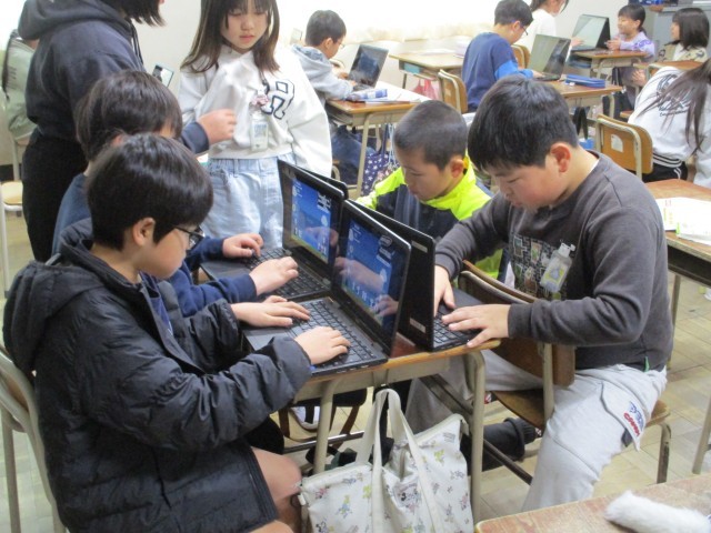今日はあいにくの雨です。休み時間は、タ友だちと一緒にブレットを使ってタイピング練習をしたり、図工で作ったすごろくで遊んだり、腕相撲をしたりしながら楽しく過ごしていました。友だちっていいですね。