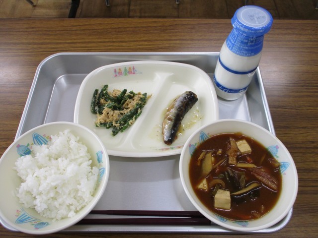 ご飯 牛乳 いわしの梅煮 いんげんのごまささみ和え ぶた汁
