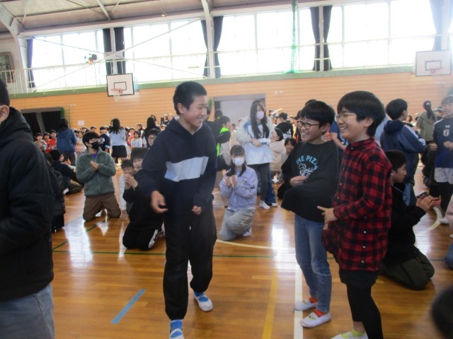 「6年生へ感謝の気持ちを伝えよう」を合言葉に今まで練習してきました。本番の今日は、みんなの気持ちがこもった演技ができました。他の学年の演技を見て、楽しい時間を過ごしました。