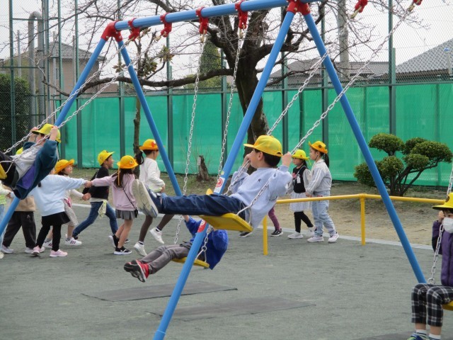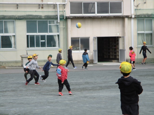 休み時間は、元気に外遊び。最近鬼ごっこが流行っています。はないちもんめをしている1年生もいました。