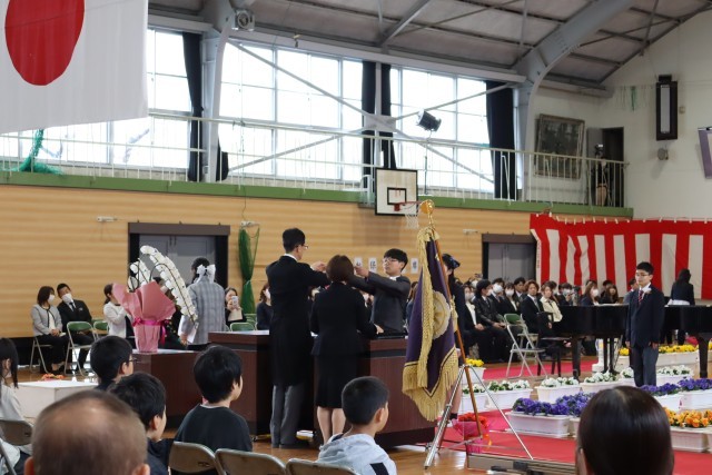 本日、第79回卒業式を挙行いたしました。卒業生64名、名残惜しさを感じながらも、笑顔で葉栗小学校を巣立っていきました。6年間の成長を感じる素晴らしい式となりました。中学校でも、自分らしさを大切に頑張ってくれることを願い、応援しています。保護者の皆様には、6年間、様々な場面で本校の教育活動にご理解とご協力をいただき、ありがとうございました。