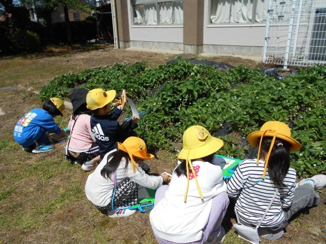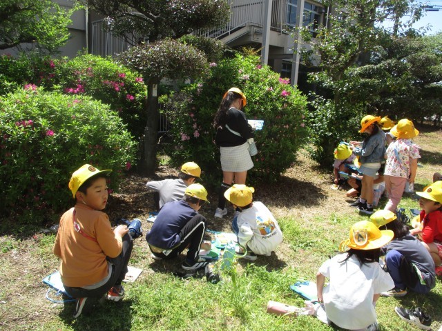 今日は、図工の時間に春を感じるものを見つけにいきました。