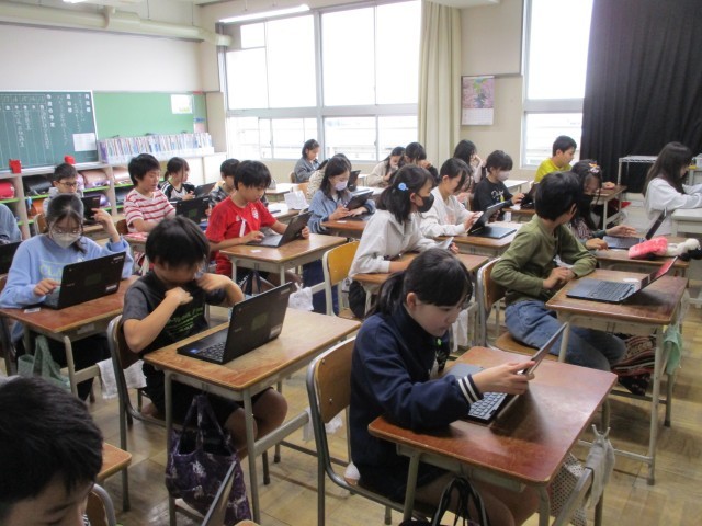 休日の課題は、クロームブックで行っていきます。今年度より、「ミライシード」というアプリを使い、ドリルパークという画面で学習することができるようになりました。今日はその使い方について確認しました。自分の力に合わせてどんどん学習できるようになっています。力をつけていきましょう。
