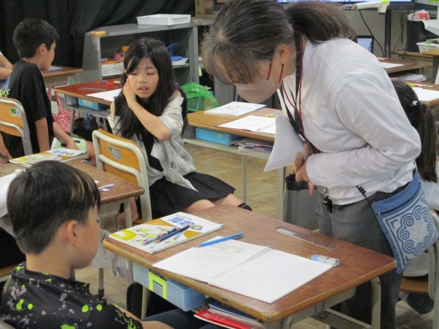 算数では大きい数の表し方について学習しています。問題を解くとき、桁を間違えないように数字を書いていました。